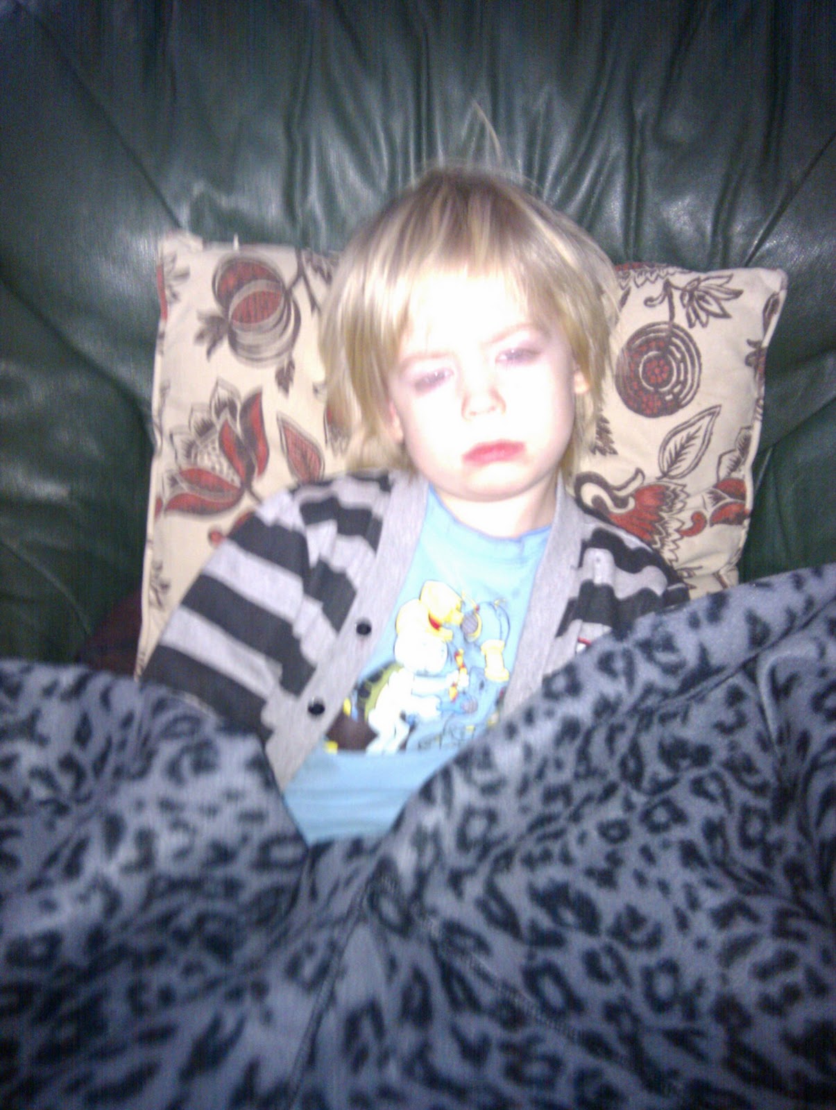 å ja han är inte pigg än...fick hämta han på dagis i fredags..feber igen:(